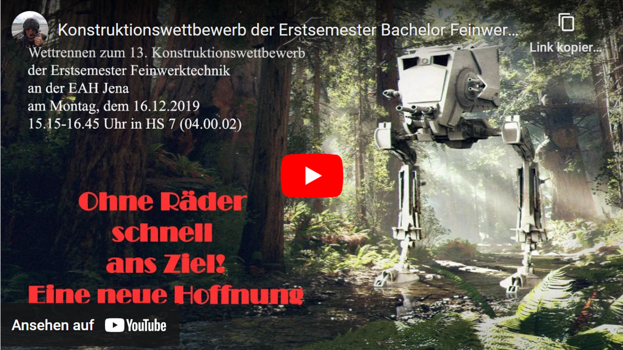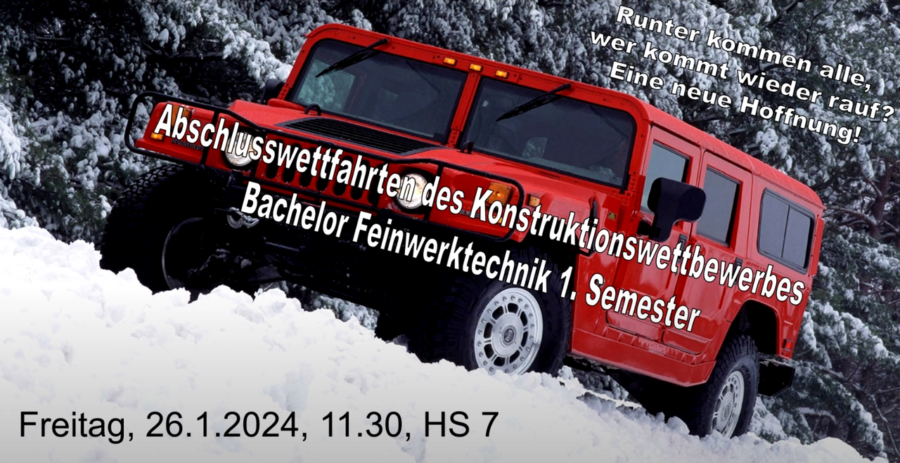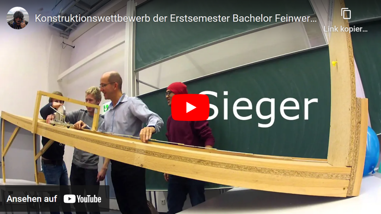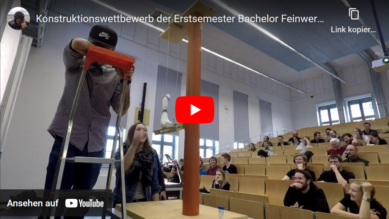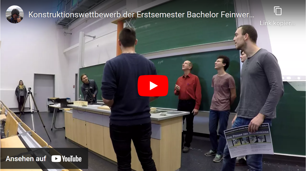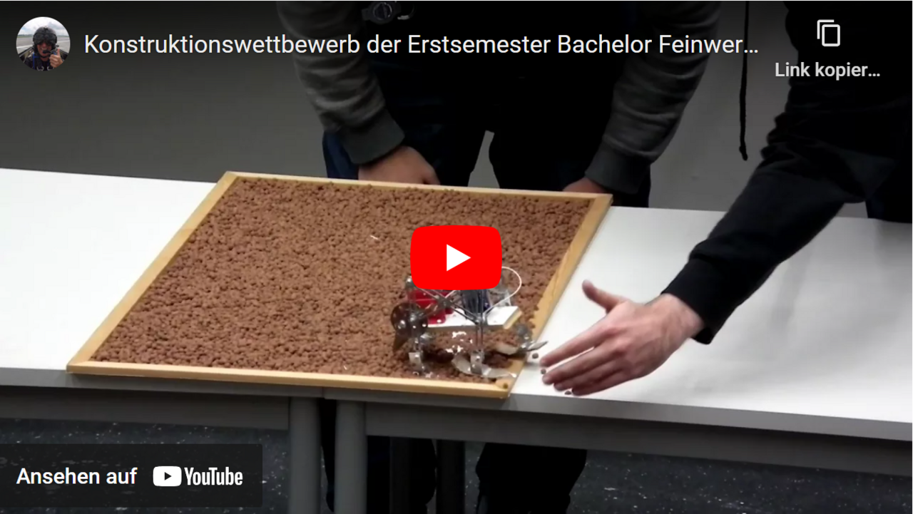 It has now become a tradition for students on the Bachelor's degree programme in Precision Engineering to complete a design task in small teams in the first semester. They have several weeks to do this. At the end of the semester, there is a final competition in the lecture theatre where all the teams present themselves and a winning team is chosen.