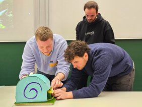 Die diesjährige Aufgabenstellung stellte die Studierenden vor eine ebenso ungewöhnliche wie anspruchsvolle Herausforderung: Entwickelt werden sollte ein Gerät, das mithilfe einer begrenzten Energiequelle einen entfernten Punkt zielgenau, schnell und vollautomatisch ansteuert. Räder oder Gleisketten waren dabei ausdrücklich verboten. Stattdessen waren alternative Antriebsformen gefragt.