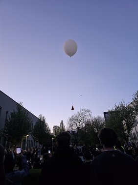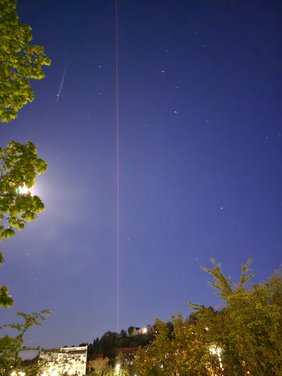 Neben dem Start eines Stratosphärenballons war ein weiteres Highlight die Vorführung des Guide Star Lasers (TOPTICA Photonics SE), mit dessen Hilfe ein künstlicher Leitstern über Jena erleuchtete.