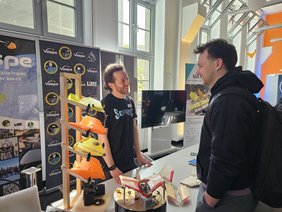 Die Aula und das Aulafoyer der EAH Jena wurden zur Zentrale der Thüringer Raumfahrt-Community. Acht Vorträge in den Themenblöcken „Mit Artemis zurück zum Mond“, „Optik in der Raumfahrttechnik“ und „Studentische Raumfahrt“ gaben Einblicke in aktuelle Entwicklungen. Zahlreiche Aussteller, darunter die Jena Optronik GmbH, das Fraunhofer-Institut für Optik und Feinmechanik und die Starlab Space GmbH, diverse Mitmachangebote, Workshops sowie anschauliche Demonstrationen luden die Gäste zum Entdecken und Staunen ein.