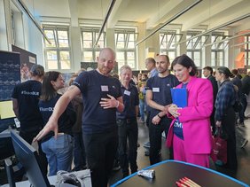 Mario Voigt, Ministerpräsident des Freistaats Thüringen und Colette Boos-John, Thüringer Ministerin für Wirtschaft, Landwirtschaft und Ländlichen Raum, betonten in ihren Ansprachen die strategische Bedeutung der Raumfahrt für die wirtschaftliche und wissenschaftliche Entwicklung Thüringens.
