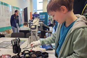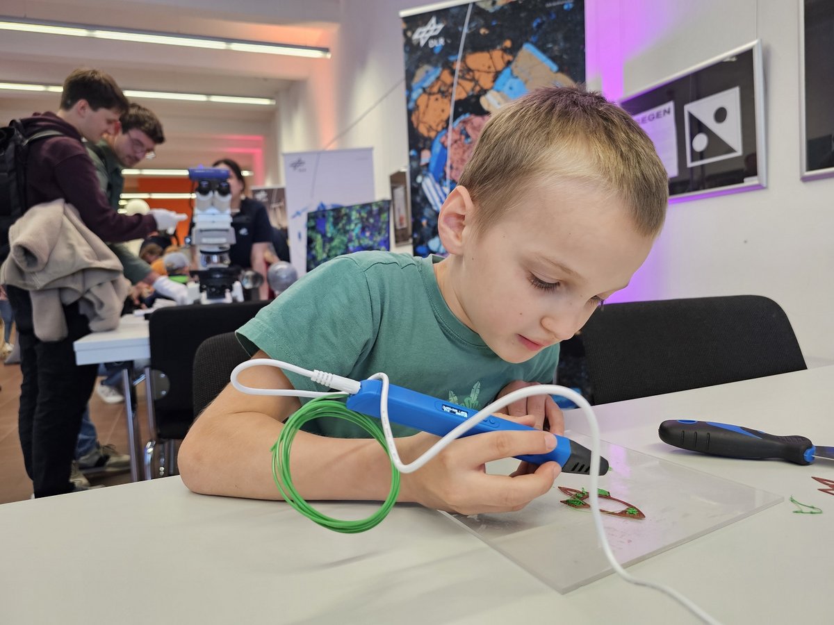 Echte „Hands-on”-Erlebnisse versprachen auch die Mitmach-Workshops „Fliege deine eigene Ballonpayload in die Stratosphäre“ durch das Projekt MAVAS der EAH Jena oder „Löte dein eigenes Raketenspiel“ durch VESPE Jena e.V. sowie den Fachbereich Elektrotechnik und Informationstechnik. Junge Forscherinnen und Forscher nutzen die Gelegenheit, ihre eigenen Experimente zu planen und zu testen.