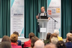 In der anschließenden Podiumsdiskussion „Arbeitswelt im Umbruch – digital, gesund, machbar?“ diskutierten Vertreterinnen und Vertreter aus kleinen und mittleren Unternehmen, Großbetrieben sowie dem öffentlichen Dienst darüber, wie sie den aktuellen Wandel gestalten und mit welchen Strategien und Best-Practice-Beispielen sie gesunde Arbeit erfolgreich umsetzen.