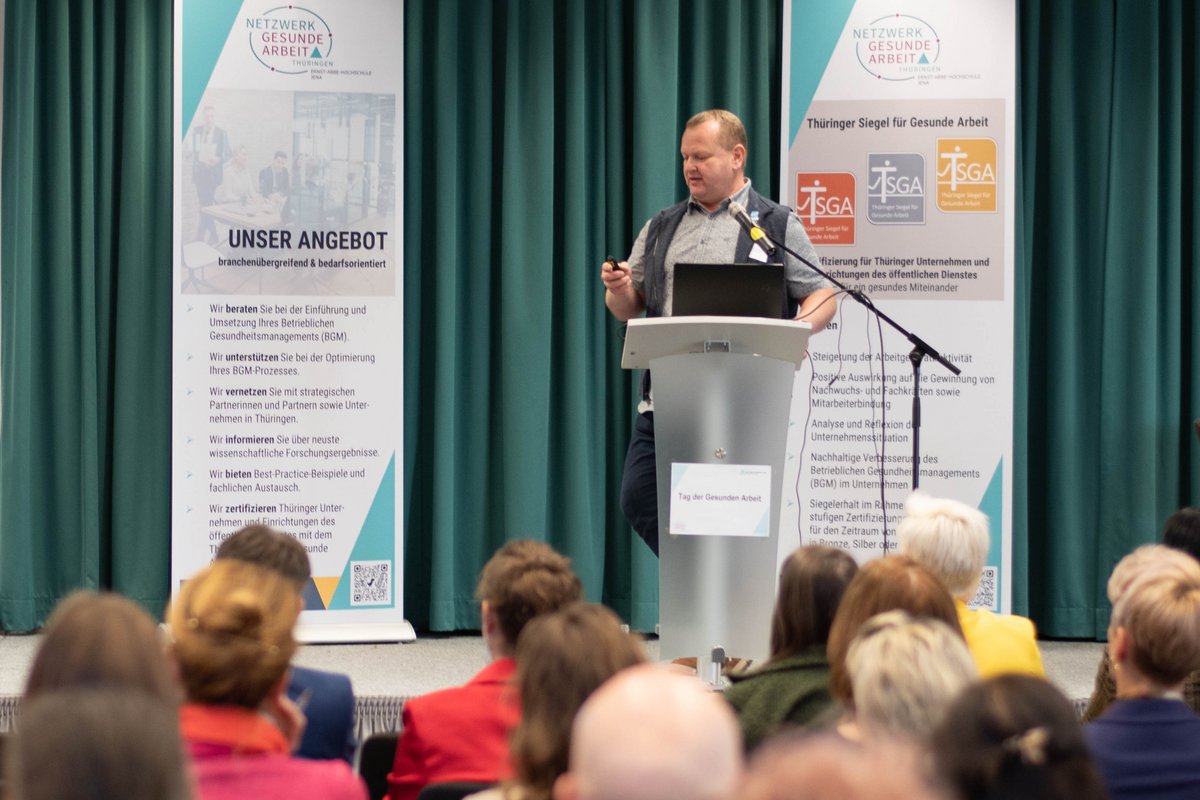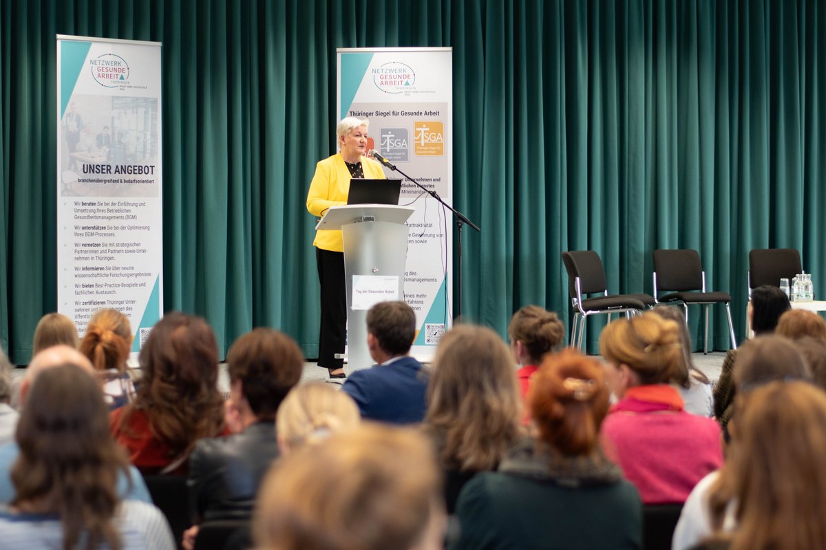 Ein Höhepunkt des Tages war die Verleihung des Thüringer Siegels für Gesunde Arbeit durch das Netzwerk Gesunde Arbeit in Thüringen. Acht Unternehmen und Einrichtungen des öffentlichen Dienstes, die sich in besonderer Weise für die Gesundheit ihrer Beschäftigten und für gesunde Arbeitsbedingungen einsetzen, haben sich in diesem Jahr um das Siegel beworben. Mit dem Goldsiegel wurden die Stadtverwaltung Jena, die Universität Erfurt, der AWO Regionalverband Mitte-West-Thüringen e.V., die Friedrich-Schiller-Universität Jena und der Kommunalservice Jena ausgezeichnet. Das Silbersiegel erhielten die Diako Thüringen gGmbH, die SERIMED GmbH & Co. KG sowie das Unternehmen Materion Balzers Optics.