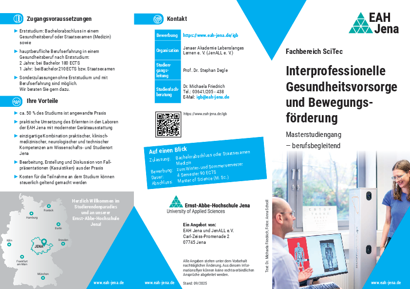 | Anfragen/ Kontakt | E-Mail: igb@eah-jena.de Telefonische Beratung: Dr. Michaela Friedrich: 03641/ 205 - 438 |