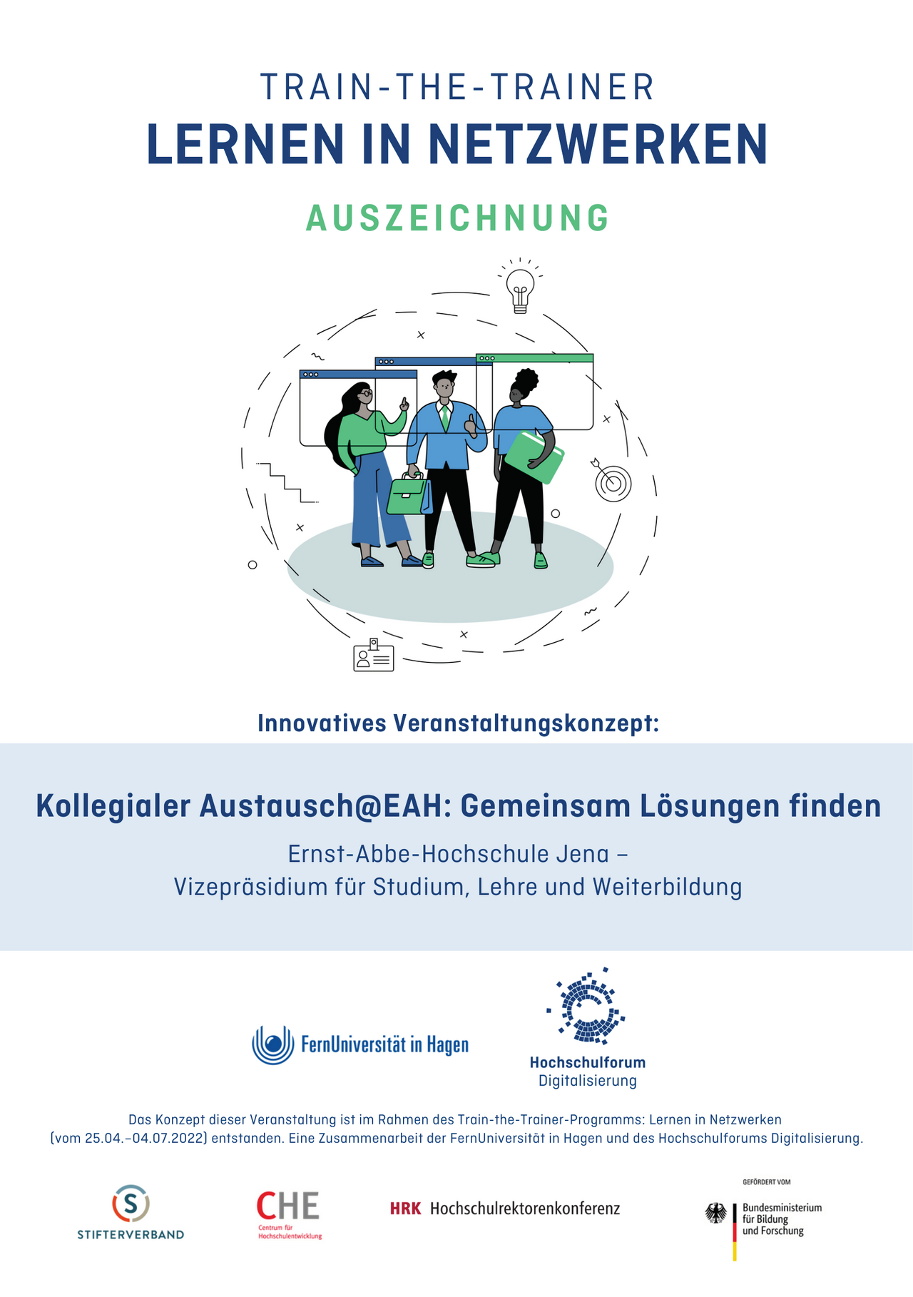 Konzipiert wurde das Veranstaltungsformat "Kollegialer Austausch@EAH: Gemeinsam Lösungen finden" mit Begleitung des Hochschulforums Digitalisierung in den Fortbildungsreihen HFDxChange und Train-the-Trainer.