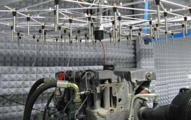Parameter: Durchmesser 1 m, 36 Messmikrofone, Analysesoftware für Beamforming und Nahfeldholographie