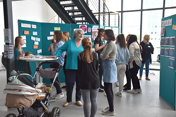 „Beruf, Studium und Familie in Einklang“: Unter diesem Motto fand am 24.5.2023 der erste „Tag der Vereinbarkeit“ an der Ernst-Abbe-Hochschule statt. Zahlreiche Infostände lieferten eine Fülle an Informationen über Dienstleistungen und Beratungsangebote zur Unterstützung im Hinblick auf das vielfältige Thema. Außerdem gab es gab viel Raum für Austausch über persönliche und institutionelle Herausforderungen. Die Kinderbetreuung vor Ort ermöglichte es Eltern, an den Veranstaltungen teilzunehmen und von den gebotenen Möglichkeiten zu profitieren.