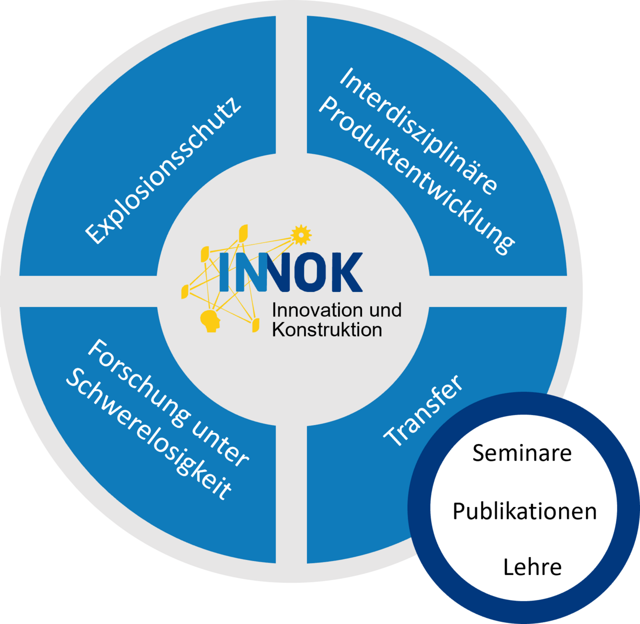 Die Mitarbeiter der Arbeitsgruppe Innovation und Konstruktion beschäftigen sich mit Problemstellungen im Bereich der Angewandten Forschung und Entwicklung. Sie arbeiten in interdisziplinären Forschergruppen gemeinsam mit Wissenschaftlern aus den Fachbereichen der Medizin, Biologie, Elektrotechnik, Informatik und der Naturwissenschaften eng zusammen. Die Haupttätigkeit umfasst, dabei den Stand der Technik zu erweitern. Das erfolgt, aufbauend auf den Ergebnissen der Grundlagenforschung, durch die Generierung von neuem Wissen zur Lösung von technischen Problemen oder durch die Kombination von vorhandenem Wissen zu neuen technischen Lösungen. Ziel ist es immer, die Ergebnisse der Grundlagenforschung in konkrete technische Anwendungen zu überführen. Vordergründig ist dabei neben der technischen Realisierung auch die konsequente Beachtung der wirtschaftlichen Vorgaben.