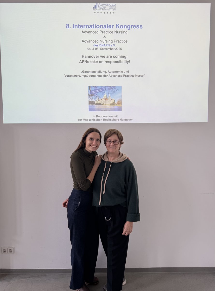 Das war das Motto des diesjährigen 8. Internationalen Advanced Practice Nursing & Advanced Nursing Practice Kongresses 2025 in Hannover, den das Deutsche Netzwerk für Advanced Practice Nursing & Advanced Nursing Practice e.V. (DNAPN e.V.) gemeinsam mit der Medizinischen Hochschule Hannover (MHH) organisierte und gestaltete. Frau Dr. Anne Helga Schmitt, Lehrbeauftragte für besondere Aufgaben an der EAH im primärqualifizierenden Studiengang Bachelor Pflege sorgte als Vizepräsidentin des DNAPN e.V. (https://dnapn.de/) für Organisation und Gestaltung des DNAPN-Kongresses. Auch Frau Marie Therese Kämpf, M. A. ebenfalls Lehrbeauftragte für besondere Aufgaben im primärqualifizierenden Studiengang Bachelor Pflege, war in Hannover mit dabei und mit Ihrem digitalen Posterbeitrag am Gelingen des Kongresses beteiligt.