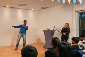 Im Anschluss erwartete die Gäste ein liebevoll gestaltetes Kulturprogramm, das von Studierenden und Mitarbeitenden der EAH Jena auf die Beine gestellt wurde. Tänze, musikalische Darbietungen und ein interaktives Quiz sorgten für beste Unterhaltung. Viele Studierende beteiligten sich aktiv und trugen damit zur lebendigen, offenen Stimmung des Abends bei.