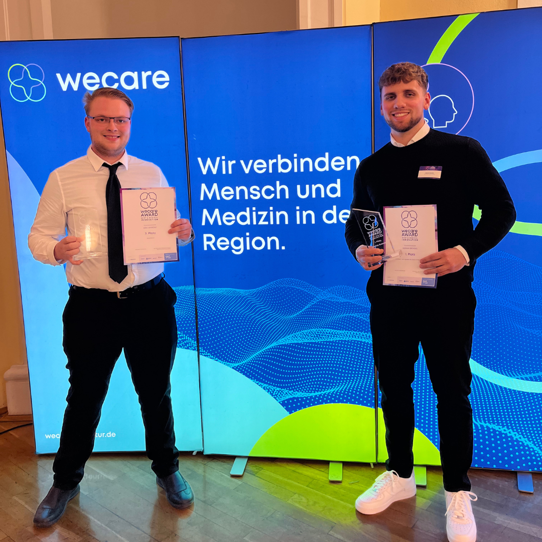 Zwei Studenten im Bachelor-Studiengang E-Commerce am Fachbereich Wirtschaftsingenieurwesen der Ernst-Abbe-Hochschule gehörten beim Wecare-Award am 3.11.2025 zu den Preisträgern.