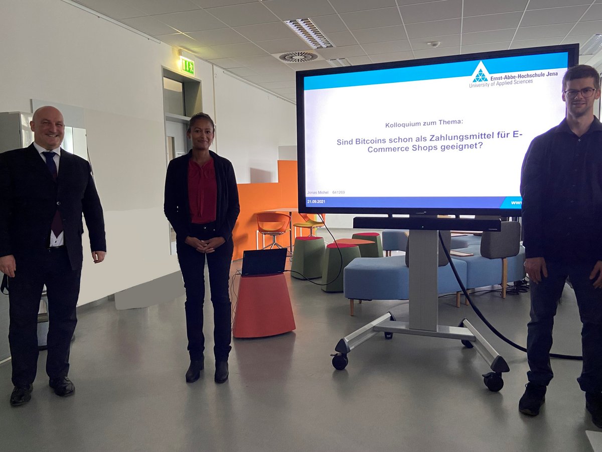 Herr Jonas Michel hat sein Bachelorstudium mit dem Ablegen der mündlichen Prüfung erfolgreich beendet. Er kam mit der Idee, irgendetwas mit Bitcoins zu machen, da er privat sich schon damit beschäftigt habe. So entstand die Frage, ob denn Bitcoins schon alltagstauglich seien.